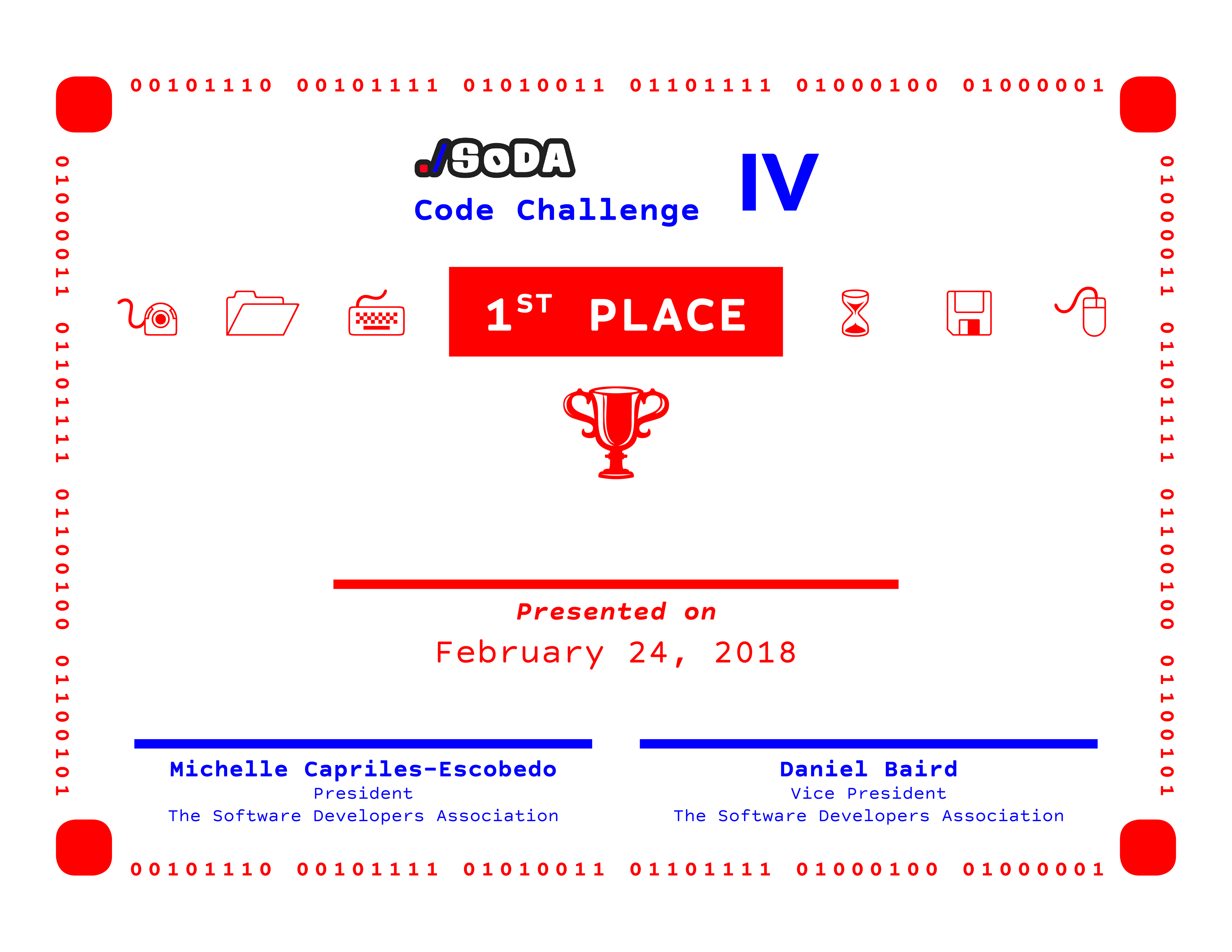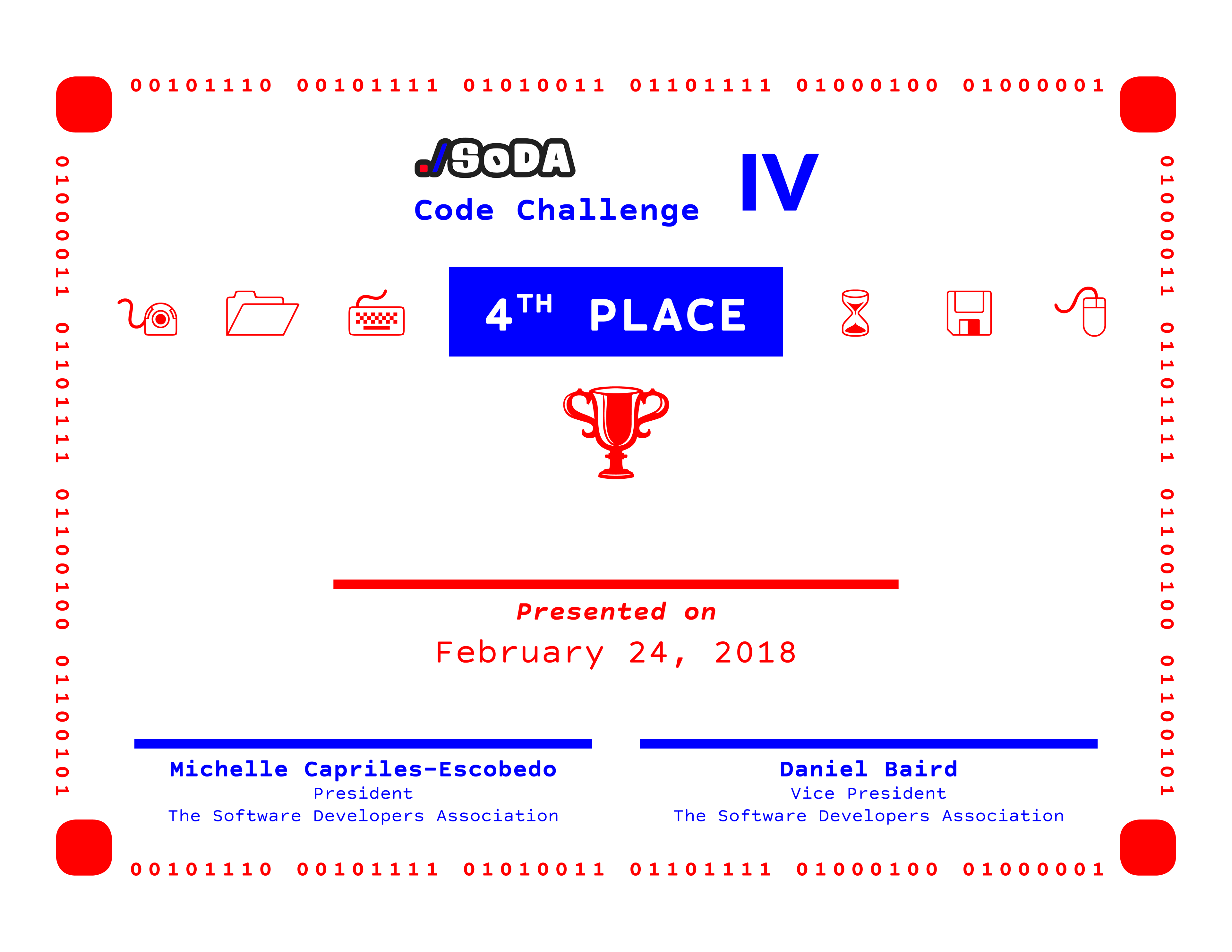 These are certificates for SoDA's 4th Annual Code Challenge.